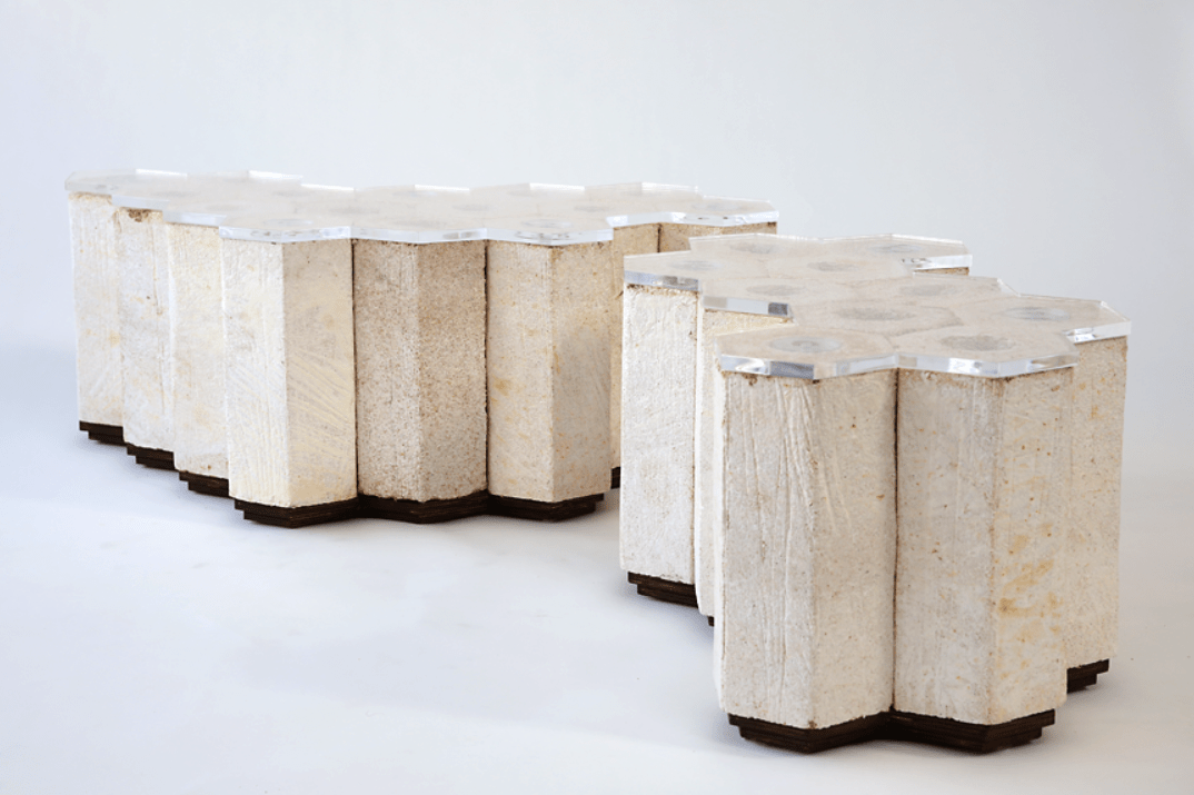 Ce matériau étonnant peut se cultiver dans n’importe quel moule, en une semaine seulement. Ses propriétés sont fascinantes : il isole acoustiquement et thermiquement, résiste aux chocs, est léger, ininflammable, biodégradable et neutre en carbone.