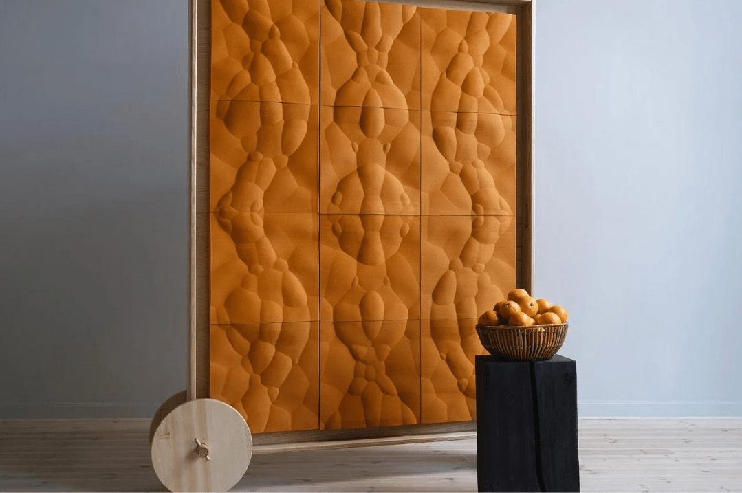In Form von leichten, flexiblen Platten werden sie zu Trennwänden, Wandverkleidungen und sogar zu Möbeln. Ihre natürliche Textur und ihre teilweise Transparenz ermöglichen das Spiel mit Licht und Schatten.